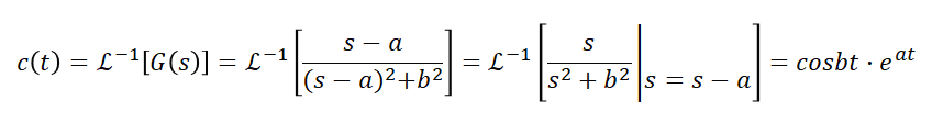 입력 R(s)=1인 단위임펄스입력을 가정하고, 응답 c(t)를 구하면,