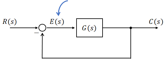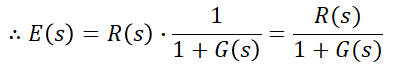 위 블록선도에서 바로 알 수 있듯이 편차함수 E(s)는 다음과 같습니다.
