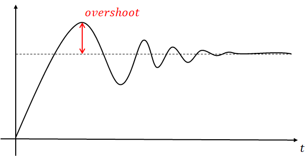 1) 오버슈트 : 응답 중에 발생하는 입력과 출력 사이의 최대 편차량을 말합니다. 그러나 이 오버슈트는 백분율 오버슈트를 이용하는 경우가 많고 의미는 다음과 같습니다.
