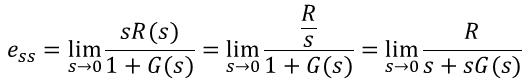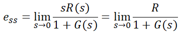 앞서 정상편차에 대해 알아보며 이 정상편차는 다음과 같은 식에 의해 구할 수 있다는 것을 보았습니다. 그리고 이 식으로부터 편차의 존재를 결정짓는 것은 G(s)라는 것도 알 수 있습니다.