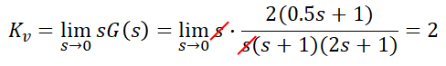 ex.2) 개루프 전달함수가 다음과 같을 때, 단위 속도 입력에 대한 정상편차를 구하시오.