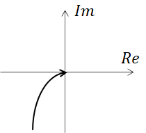 즉, 무한대의 영역에서 시작해 0에 -180도 각도로 들어오는 궤적을 그리면 되므로 다음과 같은 나이퀴스트 선도를 얻을 수 있습니다.