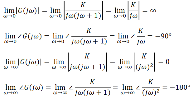 나이퀴스트 선도를 그리기 위해선 주어진 주파수 전달함수에서 ω를 0과 무한대로 보낼 때 크기와 위상을 살펴보며 그릴 수 있습니다. 따라서 0과 무한대로 가는 극한을 각각 나누어 살펴보면,