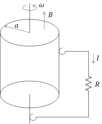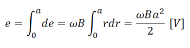 그럼 반지름 a인 원통형 단극유도자이의 유도기전력 e는 이를 적분하여 구할 수 있습니다.