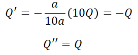 점 P의 점전하 10Q에 의한 두 영상 전하를 Q', Q''는,