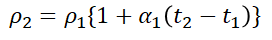 만약 t1 [ºC]에서의 고유저항을 ρ1, t2 [ºC]에서의 고유저항을 ρ2라 하면,