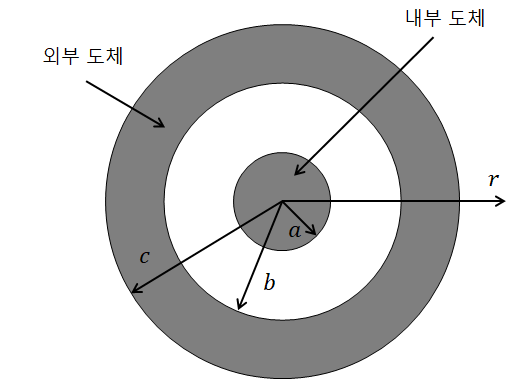 ③ 외부 도체 내(b<r<c)에 생기는 자계의 크기는 중심으로부터 거리에 관계없이 일정하다.