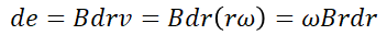 단극 유도장치에 의한 기전력을 구하기 위해 먼저 미소길이 dr에 대한 유도 기전력 de를 구하면,