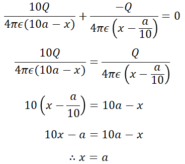 3. 반경 a인 구도체에 -Q의 전하를 주고 구도체의 중심 O에서 10a 되는 점 P에 10Q의 점전하를 놓았을 때, 직선 OP위의 점 중에서 전위가 0이 되는 지점과 구도체의 중심 O와의 거리는?