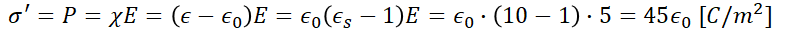 유전체의 표면 전하밀도 σ'는 분극의 세기 P와 같으므로,