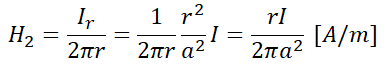 ② r<a; 내부 도체 안의 자계를 H2, 반지름 r내를 흐르는 전류인 쇄교 전류를 Ir이라 했을 때 Ir은