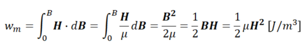 자계 내에 저장되는 단위 체적당 자기 에너지는,