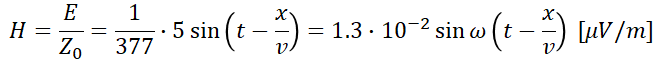 15. 평면 전자파에서 전계의 세기가 E=5sinω(t-x/v) [μV/m]인 공기 중에서의 자계의 세기는?