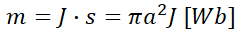 14. 길이 l[m], 단면적의 반지름 a[m]인 원통이 길이 방향으로 균일하게 자화되어 자화의 세기가 J[Wb/m^2]인 경우, 원통 양단에서의 전자극의 세기 m[Wb]는?