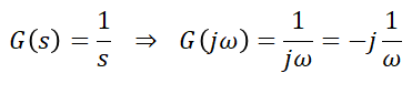 - 벡터궤적 : 벡터궤적은 위와 같이 나오는 주파수 함수에서 w를 0에서 무한대까지 값을 변형시키면서 그 크기와 위상을 표현한 것을 말합니다. 각각의 요소별로 그래프를 직접 그려보며 살펴보겠습니다.