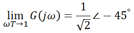 로 나타낼 수 있습니다. 이렇게 주파수 이득과 위상차를 한꺼번에 표현할 수도 있습니다. 그럼 벡터궤적은 wT의 크기의 변화에 따라 바뀌게 될 텐데, wT가 0, 1, 무한대일때로 나누어 살펴보겠습니다.