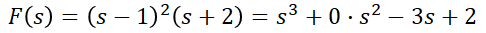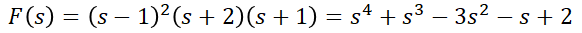이런 경우에는 특성방정식 F(s)에 적당한 (s+α)를 곱하여 구합니다. 주의할 점은 이 (s+α)는 특성방식의 중근이나 공액이 되는 근은 제외해야 합니다. 간단한 예제를 통해 살펴보도록 하겠습니다.