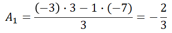 같은 방법으로 바로 B1을 구해보도록 하겠습니다. 바로 윗 행의 첫번째 계수인 A1을 분모로 가지고, 첫째 열의 두 원소인 a1, A1과 B1을 포함한 열의 바로 다음 열의 윗 두 원소인 a3과 A2의 대각선 곱의 차가 분자가 됩니다.