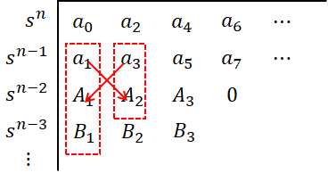 또한, 제 1열의 원소 부호가 변화한다면(불안정) 이 부호가 변화하는 횟수만큼 특성근이 우반부에 존재한다고 할 수 있습니다.