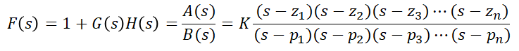 위와 같이 표현한다면, 특성방정식을 0으로 만드는 영점인 z1, z2, ... ,zn은 특성근이라는 사실을 알고 있고, 특성방정식을 무한대로 만드는 p1, p2, p3, ... ,pn은 특성방정식의 극점입니다.