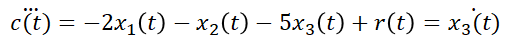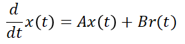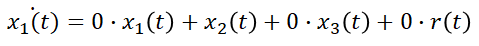 이렇게 보니 x1, x2, x3를 각각 한번 미분한 식은 x1, x2, x3, r로 표현할 수 있습니다. 따라서 위에서 살펴본 상태방정식의 일반식처럼 표현하기 위해 위 식들을 다시 쓰면,