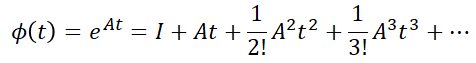 의 4가지가 있습니다. 모두 지수함수를 잘 이해하고 있다면 어렵지 않게 이해할 수 있습니다. 한 가지 예제를 통해 직접 상태방정식으로부터 상태천이행렬을 구해보도록 하겠습니다.