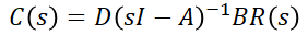 위와 같은 상태방정식의 일반식으로부터 전달함수를 구하기 위해 라플라스 변환을 하면,