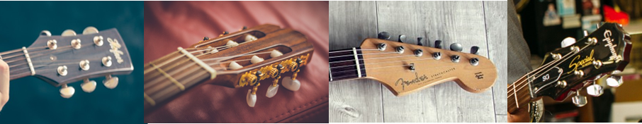 첫번째는 통기타에서 가장 일반적으로 사용하는 형태의 헤드입니다. 두번째는 클래식기타, 세번째와 네번째는 전자기타에서 일반적으로 사용되는 형태의 헤드입니다. 이게 소리에 영향을 미치는지 까지는 잘 모르겠습니다...저는 단순한 디자인 차이라고 생각이 드는데 관련해서 자세히 알고 계신분이 있다면 댓글 남겨주시기 바랍니다.