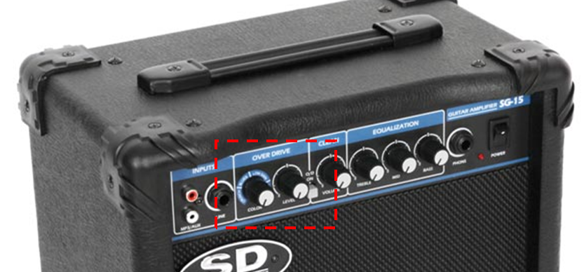 이런식으로 오버 드라이브라고 써있고, 전환을 위한 버튼은 있을 수도 없을 수도 있습니다. 아무튼 이 드라이브가 포함된 앰프를 연결하고 밑의 노브를 조절해 우리가 원하는 일렉 기타의 징징거리는 소리를 낼 수가 있습니다. 만약 베이스를 선택하셨다면 이것은 신경쓰지 말고 베이스용 앰프를 구매하시면 됩니다.