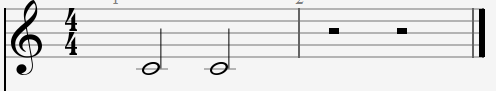 온음표의 절반으로 2박자를 연주, 2분쉼표는 2박자를 쉬어주라는 의미입니다. 2분음표 2개는 1개의 온음표와 같은 길이를 나타냅니다.