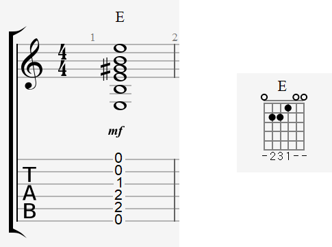 E 메이저 코드는 6줄에서 빠지는 음이 하나도 없어서 모든 줄은 전부 연주하시면 됩니다. 구성음은 근음 E에서 장3도인 G#/Ab, 그리고 완전5도인 B가 되겠네요.