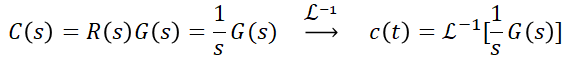 이번에는 단위 계단 응답을 알고 있을 때 전달함수를 구해보도록 하겠습니다. 역시 단위 계단 응답이므로 r(t)=u(t), R(s)=1/s이고, G(s)를 구하기 위해 응답을 라플라스변환하면,