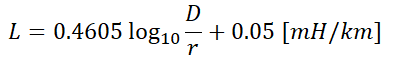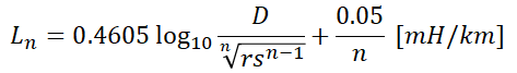 선로의 인덕턴스는 위의 식을 이용해 계산하였습니다. 그리고 복도체를 사용할 경우 r에 위의 re값으로 대입해 복도체의 인덕턴스를 다음과 같이 구했었습니다.