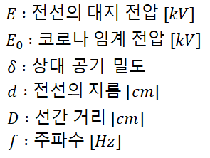 을 의미합니다. 그리고 여기서의 코로나 임계전압은 위에서 본 것처럼 다음과 같습니다.