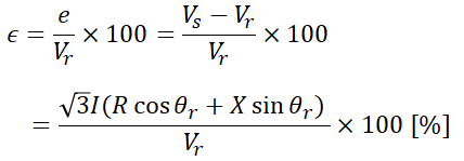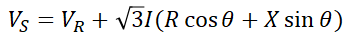 그리고 전압강하는 송전전압과 수전전압의 차를 말하므로 다음과 같이 나타낼 수 있습니다.