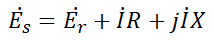 위의 회로에서 Es는 송전단 전압, Ir은 송전단 전류, Er은 수전단 전압, Ir은 수전단 전류입니다. 그리고 이들을 벡터도로 그리면 다음과 같습니다.