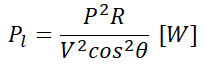 선로 저항에 의한 손실이므로 다음과 같이 구할 수 있습니다.