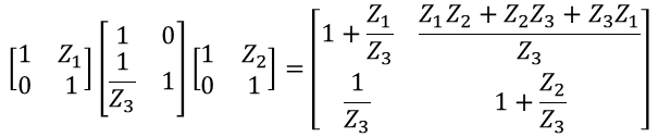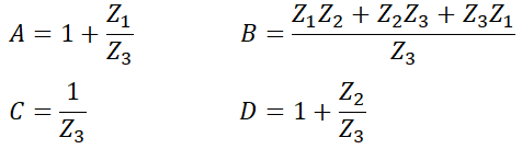 위의 T 회로에선 각각의 요소가 Z/2, Y이므로 이들을 대입하면 같은 결과를 얻을 수 있습니다.