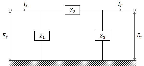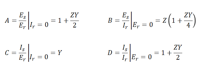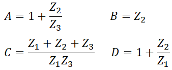 π회로에서의 4단자 정수는 다음과 같습니다.