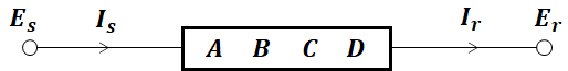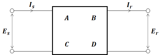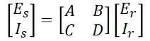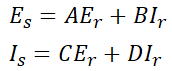 4단자 정수가 A, B, C, D인 경우 4단자 정수로부터 송전단 전압과 전류가 다음과 같음을 알고 있습니다.