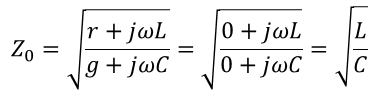 이렇게 r과 g가 0이 되는 선로를 무손실 회로라 하는 이상적인 경우를 말합니다.