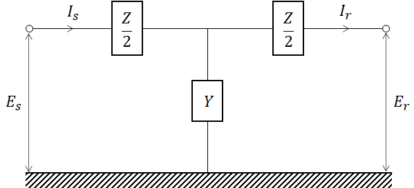 π 회로는 선로 양단에 Y/2 씩, 선로 중앙에 Z로 집중한 회로입니다.
