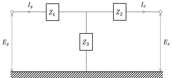 T회로는 선로 양단에 Z/2 씩, 선로 중앙에 Y로 집중한 회로입니다.