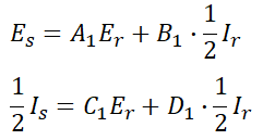 로 나타낼 수 있습니다. 여기서 A, B, C, D 파라미터의 의미는 다음과 같습니다.