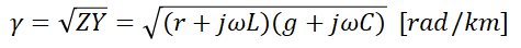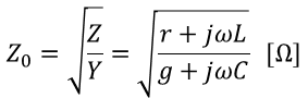 ex.2) 장거리 송전선에서 단위 길이당 임피던스 Z=r+jωL [Ω/km], 어드미턴스 Y=g+jωC [1/Ω/km]라 할 때 저항과 누설 컨덕턴스를 무시하는 경우의 특성 임피던스 값은?