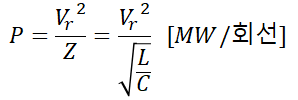 여기서 Vr은 수전단 선간 전압(kV), Z는 특성 임피던스입니다.
