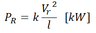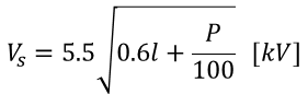 여기서 l은 송전거리(km), P는 송전용량(kW)을 의미합니다.