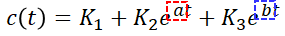 결국, 전체전달함수의 부모항이 인수분해가 가능하여 위와 같이 역 라플라스 변환한 후에 지수함수의 항이 나타나게 된다면 응답 c(t)가 발산할지, 수렴할지 그 출력 특성을 결정하는 것은 a, b가 된다는 것을 알 수 있습니다.