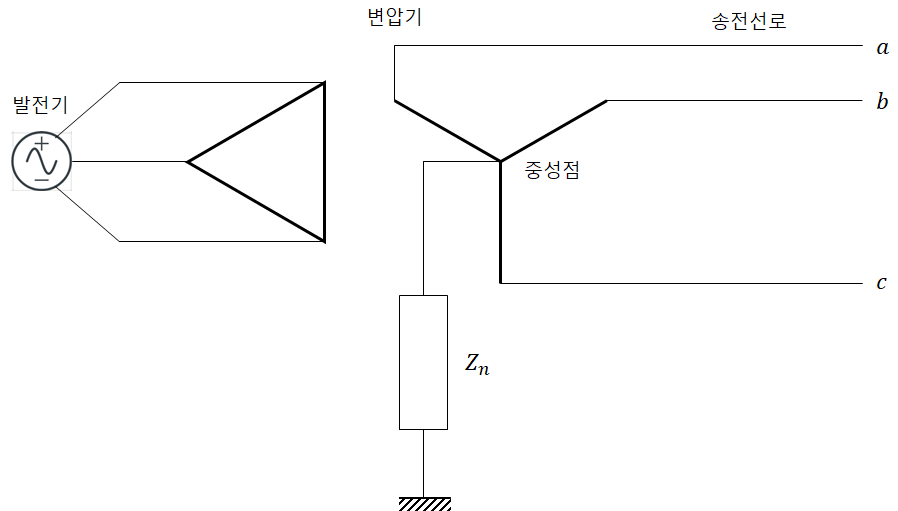 먼저 중성점 접지에서 말하는 중성점은 다음의 위치를 말합니다.
