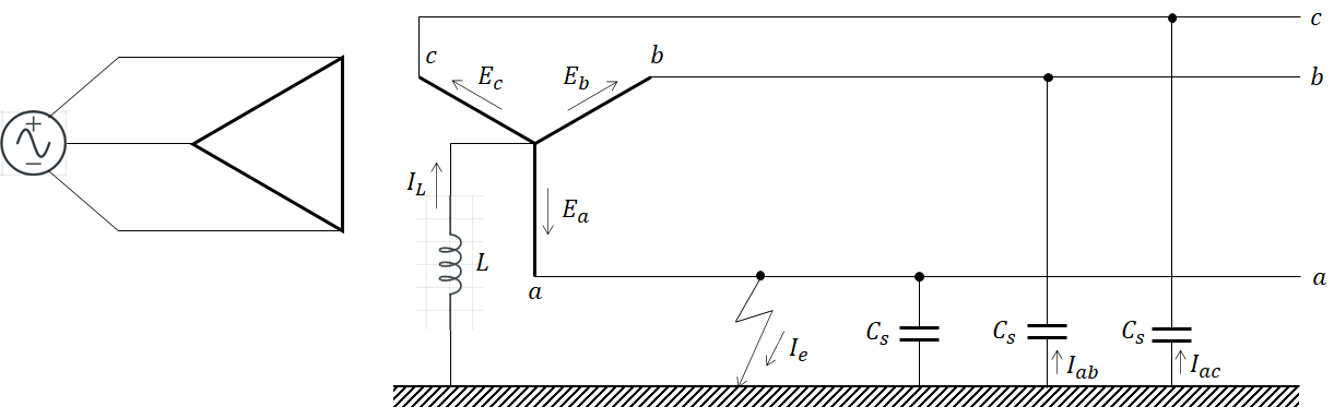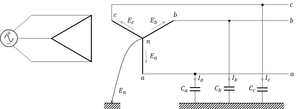 그런데 중성점이 비접지이므로,